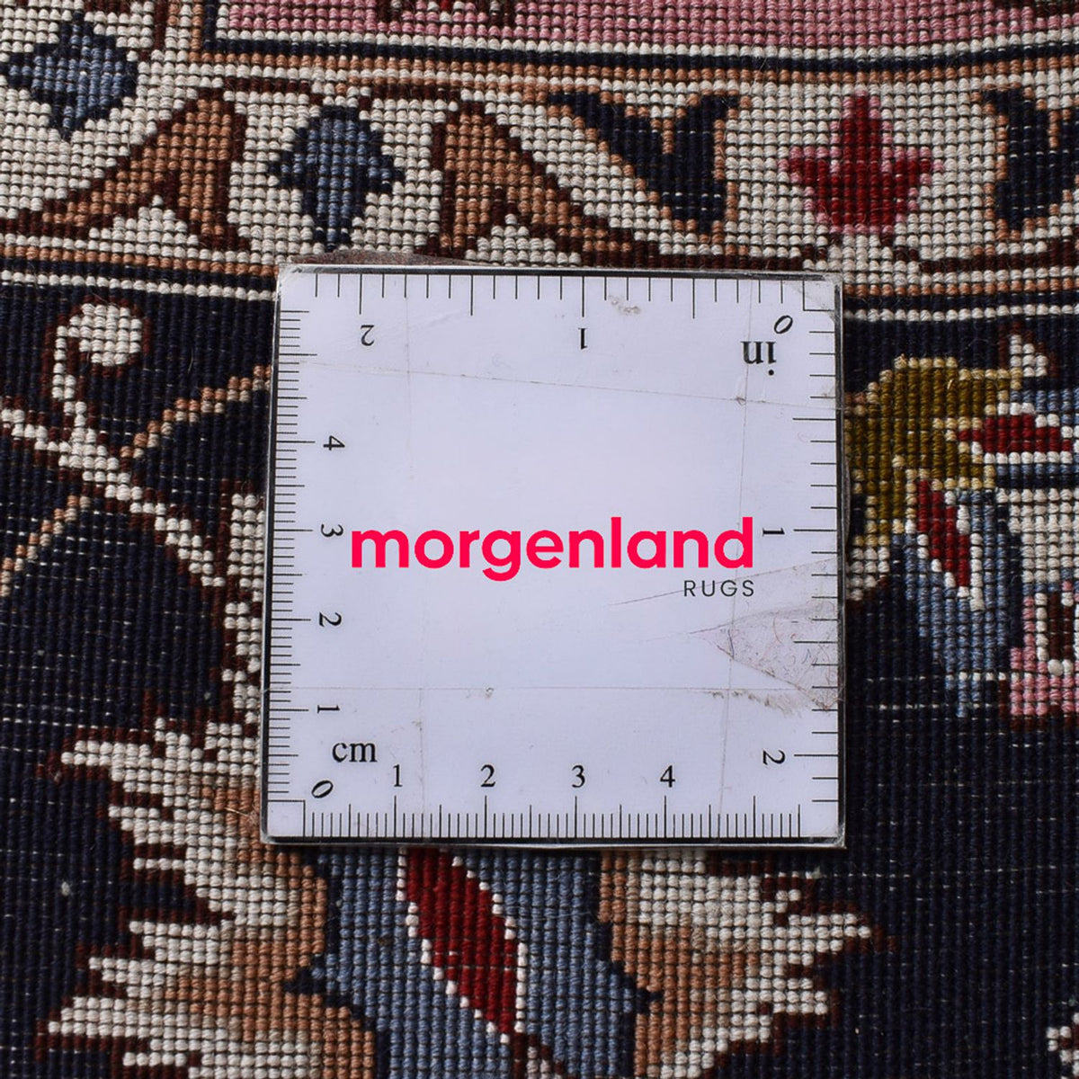 Dieser fein geknüpfte Perserteppich - Täbriz – Royal ist mit hochwertiger Korkwolle, in sorgfältiger und fehlerfreier Handarbeit gefertigt. Der Täbriz 40 Raj gehört zu den schönsten seiner Klasse. Diese Teppiche begründeten den guten Ruf der persischen Knüpfkunst. Er ist ein sehr beliebter Teppich aus einem der besten Knüpfgebiete Persiens. Sie haben oft ein großes, zentral platziertes Medaillon aus schönen Blumenmotiven, ein typisch orientalisches Motiv. Täbriz-Teppiche haben häufig die zusätzliche Bezeichnung Raj. Man unterscheidet zwischen 40, 50, 60, 70, 80 Raj. Je höher die angegebene Zahl ist, desto feiner und dichter ist der Teppich geknüpft. Raj ist eine Qualitätsbezeichnung und bezieht sich auf die Anzahl der Knoten auf einer Breite von ca. 70 mm. Aufgrund der dichten Knüpfung ist der Teppich strapazierfähig, unempfindlich und auch für extreme Benutzung gut geeignet. Klassische Eleganz und Farb-Opulenz zeichnen diesen edlen Teppich aus.