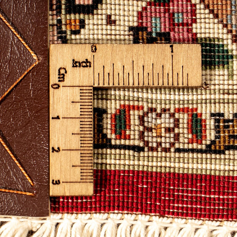 Dieser fein geknüpfte Perserteppich - Täbriz – Royal ist mit hochwertiger Korkwolle, in sorgfältiger und fehlerfreier Handarbeit gefertigt. Der Täbriz 40 Raj gehört zu den schönsten seiner Klasse. Diese Teppiche begründeten den guten Ruf der persischen Knüpfkunst. Er ist ein sehr beliebter Teppich aus einem der besten Knüpfgebiete Persiens. Sie haben oft ein großes, zentral platziertes Medaillon aus schönen Blumenmotiven, ein typisch orientalisches Motiv. Täbriz-Teppiche haben häufig die zusätzliche Bezeichnung Raj. Man unterscheidet zwischen 40, 50, 60, 70, 80 Raj. Je höher die angegebene Zahl ist, desto feiner und dichter ist der Teppich geknüpft. Raj ist eine Qualitätsbezeichnung und bezieht sich auf die Anzahl der Knoten auf einer Breite von ca. 70 mm. Aufgrund der dichten Knüpfung ist der Teppich strapazierfähig, unempfindlich und auch für extreme Benutzung gut geeignet. Klassische Eleganz und Farb-Opulenz zeichnen diesen edlen Teppich aus.