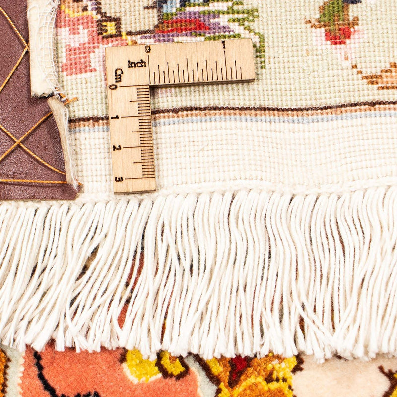 Dieser fein geknüpfte Perserteppich - Täbriz – Royal ist mit hochwertiger Korkwolle, in sorgfältiger und fehlerfreier Handarbeit gefertigt. Der Täbriz 40 Raj gehört zu den schönsten seiner Klasse. Diese Teppiche begründeten den guten Ruf der persischen Knüpfkunst. Er ist ein sehr beliebter Teppich aus einem der besten Knüpfgebiete Persiens. Sie haben oft ein großes, zentral platziertes Medaillon aus schönen Blumenmotiven, ein typisch orientalisches Motiv. Täbriz-Teppiche haben häufig die zusätzliche Bezeichnung Raj. Man unterscheidet zwischen 40, 50, 60, 70, 80 Raj. Je höher die angegebene Zahl ist, desto feiner und dichter ist der Teppich geknüpft. Raj ist eine Qualitätsbezeichnung und bezieht sich auf die Anzahl der Knoten auf einer Breite von ca. 70 mm. Aufgrund der dichten Knüpfung ist der Teppich strapazierfähig, unempfindlich und auch für extreme Benutzung gut geeignet. Klassische Eleganz und Farb-Opulenz zeichnen diesen edlen Teppich aus.
