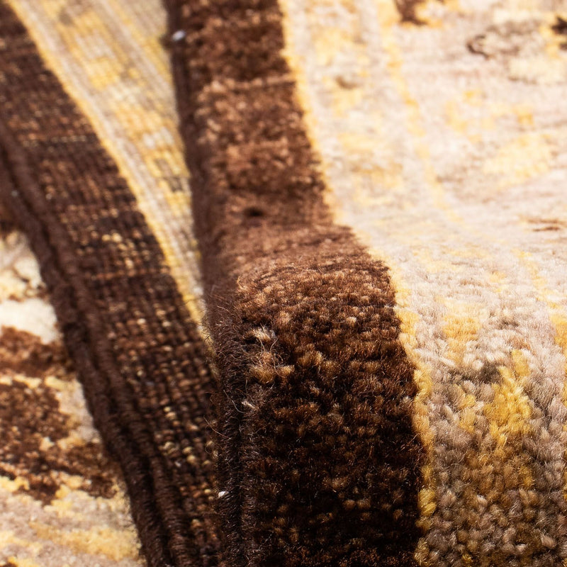 Die handgesponnene Wolle verleiht dem Teppich eine einzigartige, leicht strukturierte Oberfläche mit dezentem Glanz – ein Zeichen echter Handwerkskunst. Gleichzeitig wirkt das Material temperaturausgleichend, schmutzabweisend und sorgt für ein behagliches Raumklima.